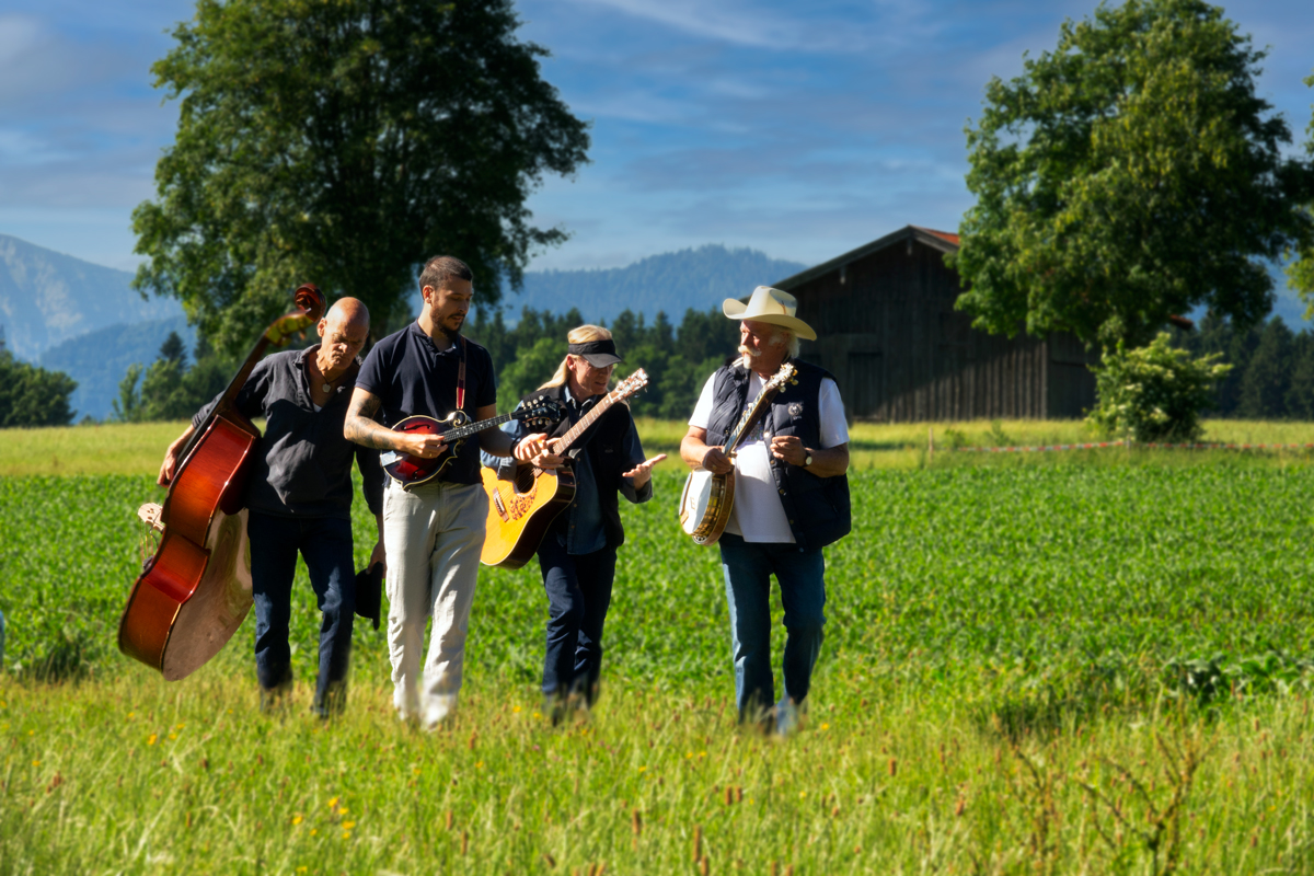Banjo, Gitarre, Mandoline, Bass, wahlweise mit Fiddle oder Dobro.